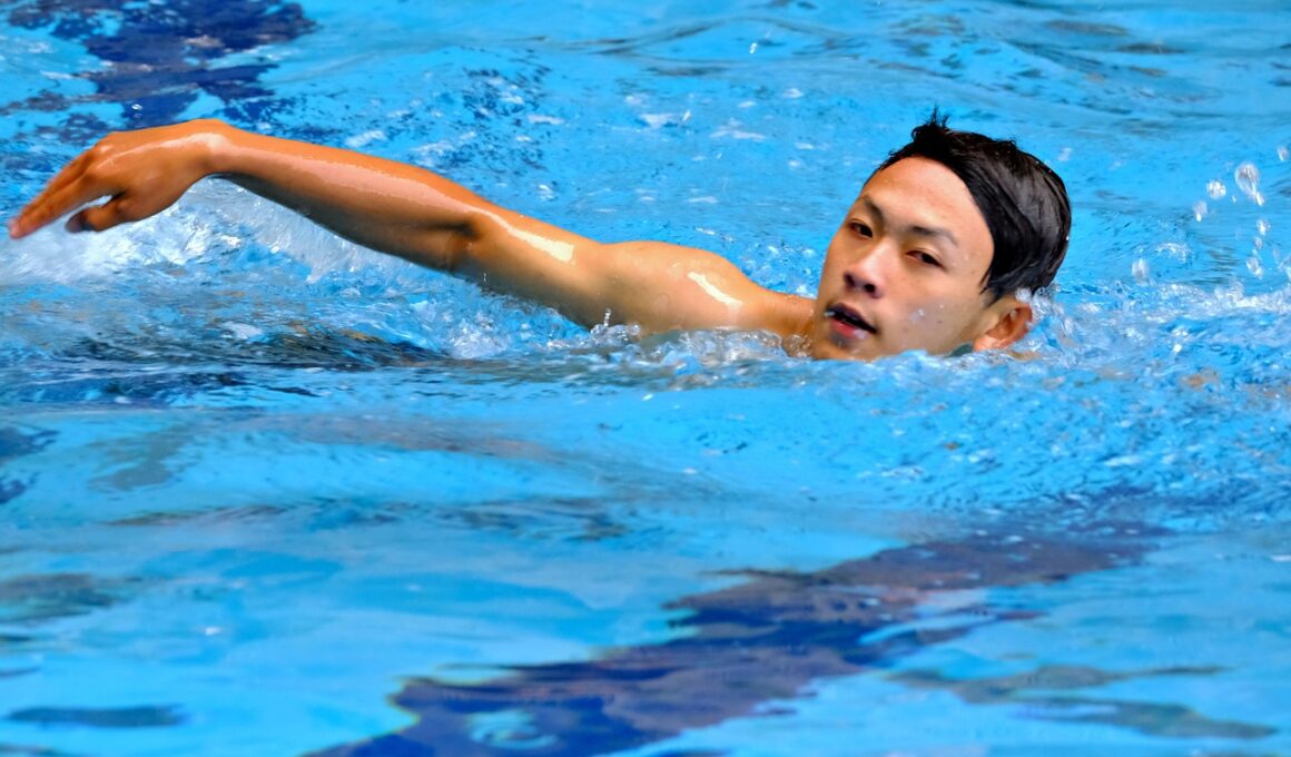 Another pivotal area in swimming biomechanics is the understanding of different swimming strokes, each necessitating distinct techniques. For instance, the freestyle stroke relies heavily on continuous rotation and a high elbow position in the water. In contrast, the breaststroke involves a unique glide phase and specific kick timing. Mastery of each stroke’s biomechanics can result in enhanced speed and reduced energy expenditures. As each type of stroke activates different muscle groups, targeted strength training provides an additional benefit to swimmers. Applying stroke-specific drills during practice helps swimmers internalize key biomechanical aspects, optimizing their performance during races. Entry angle, hand placement, and kick timing are a few areas where focused practice yields significant improvements. The backstroke, while deceptively simple, also harbors intricacies including maintaining a balanced horizontal position and effective flutter kicks. Similarly, the butterfly stroke emphasizes core strength and timing. Coaches must aid swimmers in recognizing the biomechanical demands unique to each stroke and work towards developing these elements. Furthermore, regular feedback from biomechanical analysis tools can be advantageous in pinpointing areas of improvement, directing athletes towards swimming efficiency.