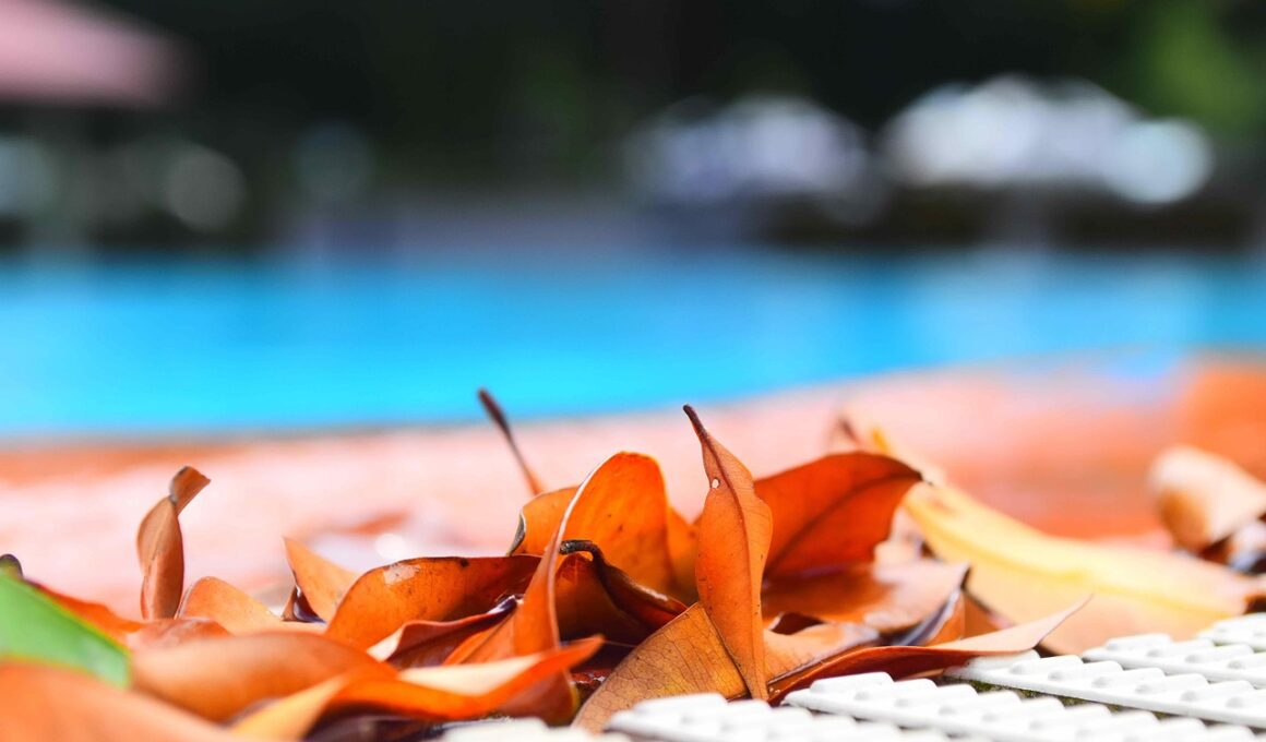 One of the most essential pool maintenance tips involves water chemistry management. Understanding the right balance of chemicals in your pool water can ensure both swimmer safety and pool integrity. Begin with routine water testing, using test strips or kits designed for this purpose. Vital aspects to check include pH, chlorine levels, alkalinity, and stabilizer concentrations. Ideally, the pH should range between 7.2 and 7.8 for optimal comfort and safety. Sodium hypochlorite or calcium hypochlorite can be used to maintain appropriate chlorine levels, typically between 1 and 3 parts per million (ppm). High levels of chlorine can irritate swimmers’ skin and eyes, making proper monitoring vital. Additionally, maintaining total alkalinity within 80 to 120 ppm prevents rapid pH fluctuations, which can be harmful. Don’t forget to add stabilizer, particularly if the pool receives direct sunlight. This prevents the UV rays from quickly degrading chlorine. Lastly, during heavy rains or after large gatherings, retest the water to ensure it remains balanced and safe for approaching swim sessions.