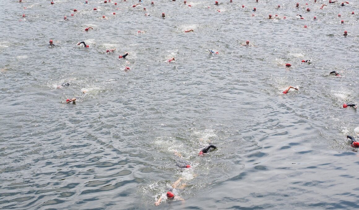 One of the essential aspects of improving your swim technique in triathlon events is gradually increasing your swim distance. It is crucial to develop endurance alongside speed and technique. Start by setting baseline distances that suit your current skill level and build on them every week. For instance, if your standard workout is one kilometer, attempt to increase this distance by ten to twenty percent in subsequent weeks. Progressive distance training not only reinforces stamina but also allows for the refinement of your technique during longer sessions. During these extended swims, practice sustained breathing and stroke efficiency, ensuring you maintain form while fatigued. Staying relaxed during longer swims is vital; concentrate on rhythm rather than speed at this distance stage. Periodically, include test swims to gauge your progress. This will instill confidence in your swimming capabilities leading up to the event. If possible, simulate race conditions by practicing open water swims instead of a pool to acclimatize fully. Over time, consistent distance training leads to improvements in comfort and performance, preparing you for the challenges faced in triathlon water events.