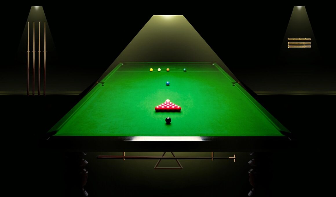 Visualization is a powerful mental skill that enhances performance in snooker. Coaches can work with players to embrace this technique, utilizing mental imagery to rehearse specific shots and strategies vividly. Visualization can boost confidence and clarity, reinforcing the player’s mental framework. To practice effective visualization, players should find a quiet place to close their eyes, allowing them the space to concentrate. During this process, they mentally walk through their desired shots, imagining every detail from the positioning of the balls to their body posture. This mental rehearsal not only aids in perfecting technique but also prepares the mind for actual gameplay. One essential aspect of this is to vividly feel and experience the emotions associated with playing; for example, players may envision reactions from their teammates or fans. This adds further depth to their practice. Furthermore, coaches can encourage players to visualize successful outcomes regularly. Consistent visualization reinforces a winning mindset. Over time, this can improve overall performance significantly. By incorporating visualization into their training routine, players can further develop their mental resilience under pressure, making it a game-changer in competitive scenarios.