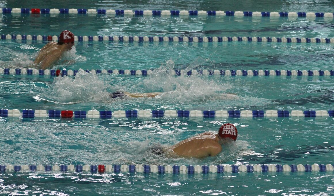 Nutrition is a cornerstone of successful swimming, particularly when facing back-to-back competitions. Fueling your body correctly can significantly affect your performance. Start by creating a meal plan that focuses on high carbohydrate intake leading up to the meets. Options like pasta, rice, and whole grains can provide essential energy. Including lean proteins such as chicken, fish, or plant-based protein sources will assist in recovery, helping muscles rebuild quicker. Consuming fruits and vegetables will add necessary vitamins and minerals crucial for your body. Instead of eating large meals, prioritize smaller, more frequent meals to maintain energy levels throughout both days of meets. Carry healthy snacks like energy bars or bananas to provide quick energy in between races. Proper hydration cannot be overlooked; dehydration can severely impact performance. Drink water consistently, aiming to consume at least half your body weight in ounces daily. Electrolyte drinks can aid in recovery, particularly after intense heats, ensuring your body replenishes what it lost. Monitoring your hydration status can help prevent fatigue and cramping too. Staying ahead of your nutrition and hydration strategy during this time will set you up for optimum performance.