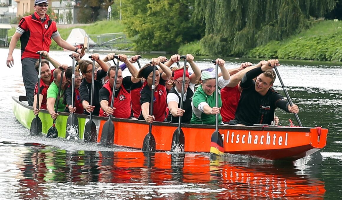 Dragon boating is an exhilarating team sport that requires participants to synchronize their efforts, ensuring performance is fluid and efficient. To excel in this sport, developing quick reflexes is essential. Quick reflexes help you react promptly to commands and unexpected shifts in the boat’s movement. Start by incorporating agility training into your exercises. This can include ladder drills or cone zigzags focusing on explosive footwork. Additionally, improve your hand-eye coordination through practices such as catching a ball while moving. These drills engage the brain while enhancing physical response times. Another effective method is to practice with a partner who can provide instant feedback on your reactions. Engage in reaction drills, where one partner simulates an unpredictably moving object. Studies suggest this not only boosts reflexive responses but also sharpens focus, important for navigating changes in pace or direction during races. Furthermore, prioritizing overall fitness through strength and cardio workouts can enhance your bodily responsiveness. Your stamina also plays a crucial role in maintaining quick reflexes throughout races.
