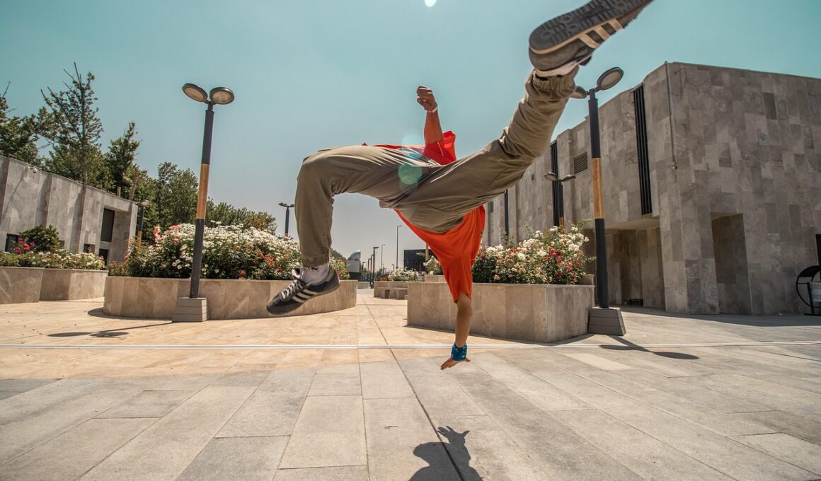 Engaging in a parkour community fosters both motivation and safety. Being part of a supportive group enhances learning opportunities through shared experiences, knowledge, and encouragement. Connecting with individuals who share your passion can also inspire collective growth and camaraderie. Look for local parkour classes, community events, or online forums to find peers interested in urban exploration. Practicing with others is immensely beneficial, particularly when trying complex moves or tackling new obstacles. Experienced practitioners can provide valuable feedback, helping beginners understand proper form and techniques. They can also serve as spotters while attempting difficult jumps, ensuring enhanced safety during practice. Moreover, by joining a community, you’ll become part of the parkour culture, enjoying activities such as workshops, challenges, or competitions. Regular training sessions can be organized collectively, enriching your consistency and commitment to improvement. Safety in numbers serves as an excellent reminder: having supportive partners can lead to fewer accidents and enjoyable experiences. As you interact within the community, respect each individual’s journey and encourage one another. Celebrating accomplishments big and small creates a connected environment, making every step in your urban parkour adventure more meaningful.