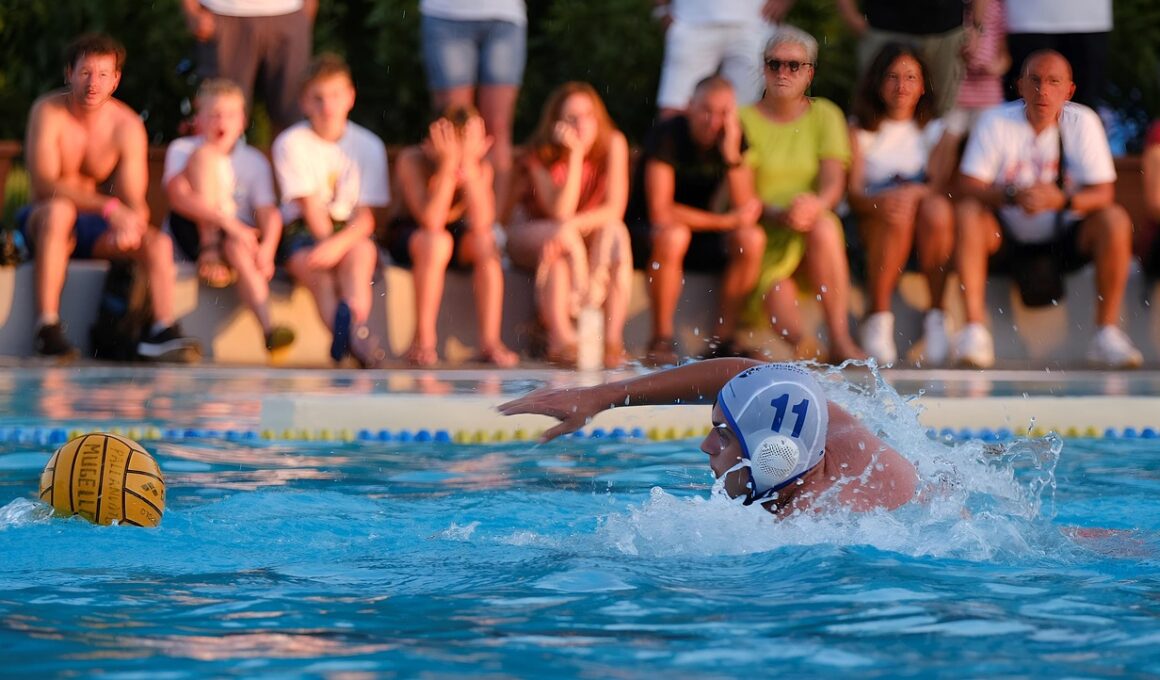 Injuries in water polo can vary significantly depending on individual levels of experience and physical condition. One of the most common injuries is related to overuse, particularly in the shoulder and elbow areas. This occurs from the constant throwing and swimming motions required in the game. Furthermore, knee injuries, including ligament tears, may happen during abrupt directional changes or when players are jostling for position in the water. To mitigate these risks, including resistance training focused on core stability can be beneficial. Athletes should also prioritize rest and recovery, allowing their muscles to repair after intensive practice. Using ice packs on inflamed areas can substantially reduce swelling and pain, while regularly scheduled rest days can prevent fatigue-related injuries. Coaches must be attentive to players’ physical conditions and limit their training volume if necessary. Screening for flexibility and strength imbalances can identify individuals at higher risk for injuries. Additionally, using proper swimming techniques and body positioning can reduce unnecessary strain on joints. With thoughtful preventative measures, players can manage their risk of injury effectively while enhancing their performance.